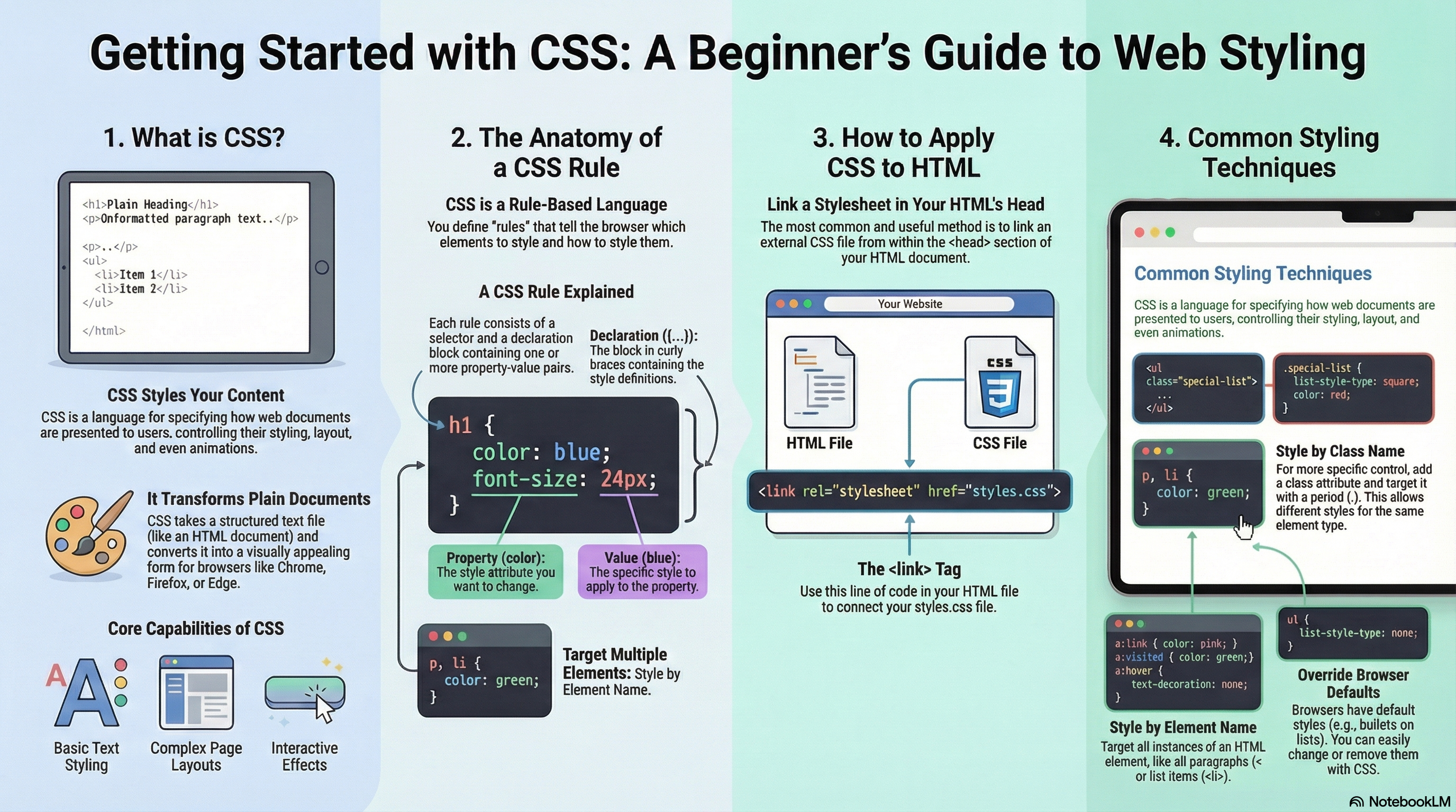 Lists behave like any other text for the most part, but there are some CSS properties specific to lists that you need to know about, and some best practices to consider. This unit explains all.