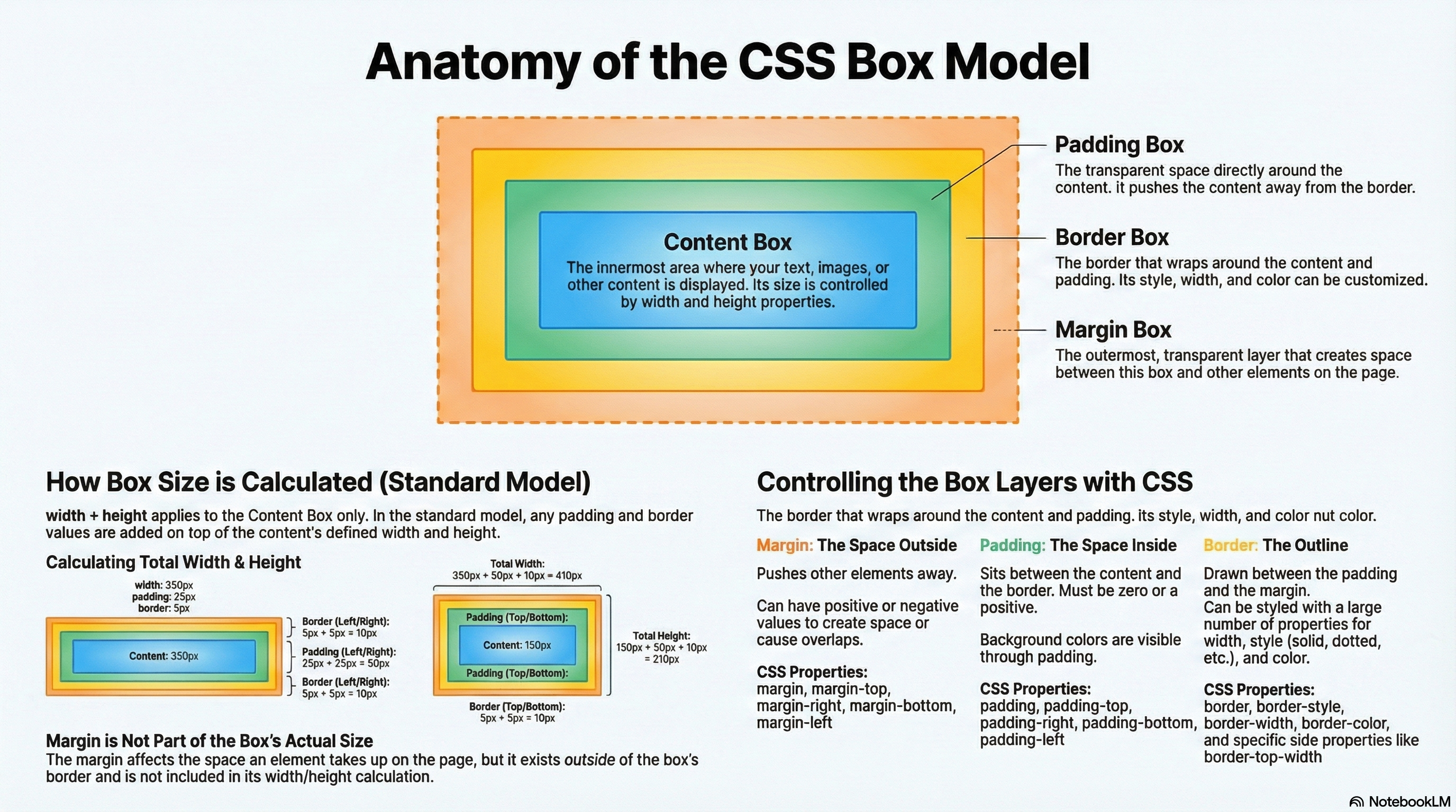 Content box: The area where your content is displayed, which can be sized using properties like width and height.