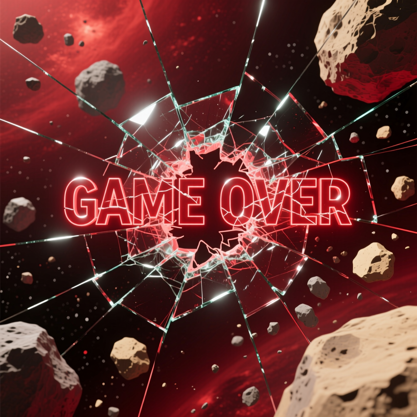 Mediante esta función generamos un overlay gráfico de Game Over que tapa sutilmente la escena con una textura semitransparente (TEX_GAME_OVER). Este overlay demuestra cómo componer capas para mostrar estados del juego sin necesidad de cambiar de escena o borrar entidades. El jugador ve exactamente dónde murió (nave, asteroides y disparos congelados), pero bajo un velo que indica que la partida ha terminado.
